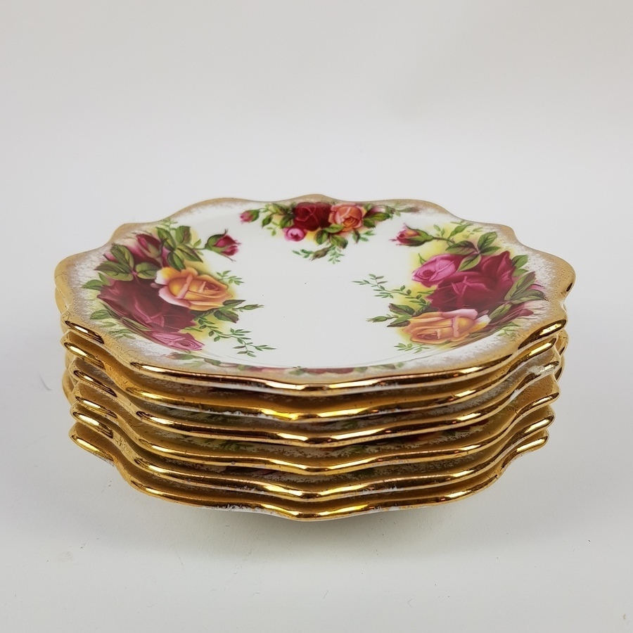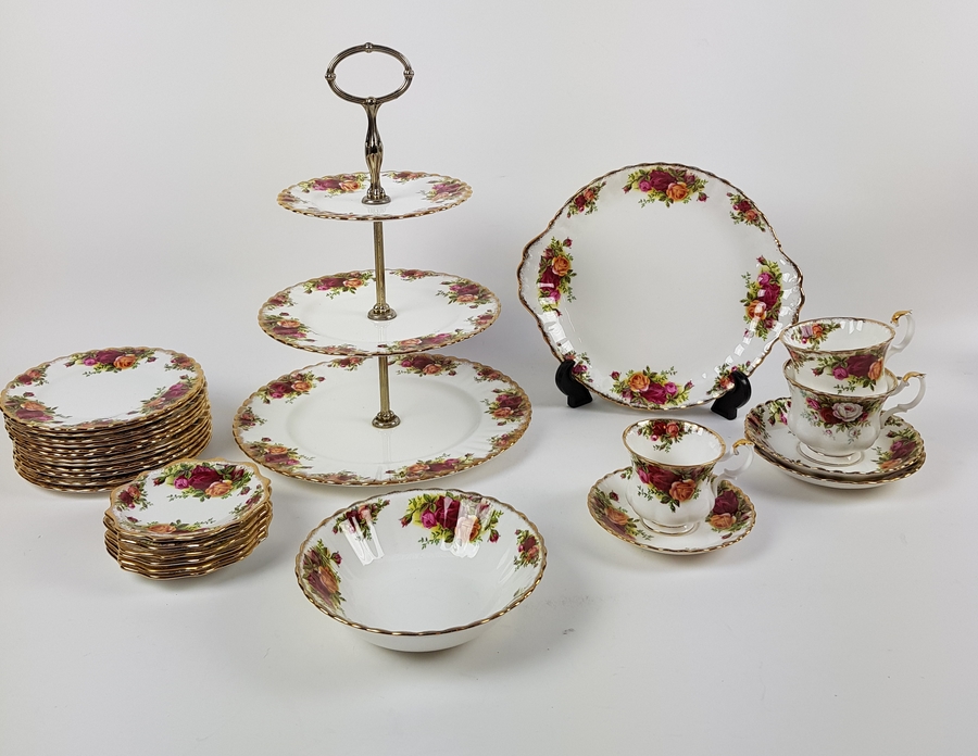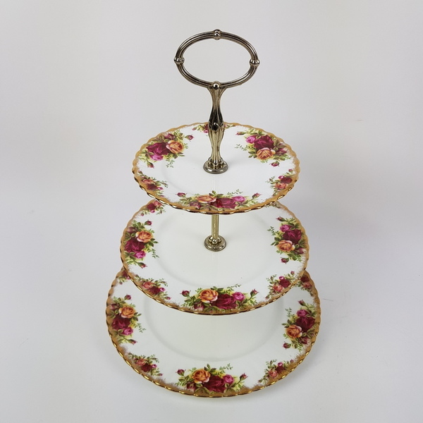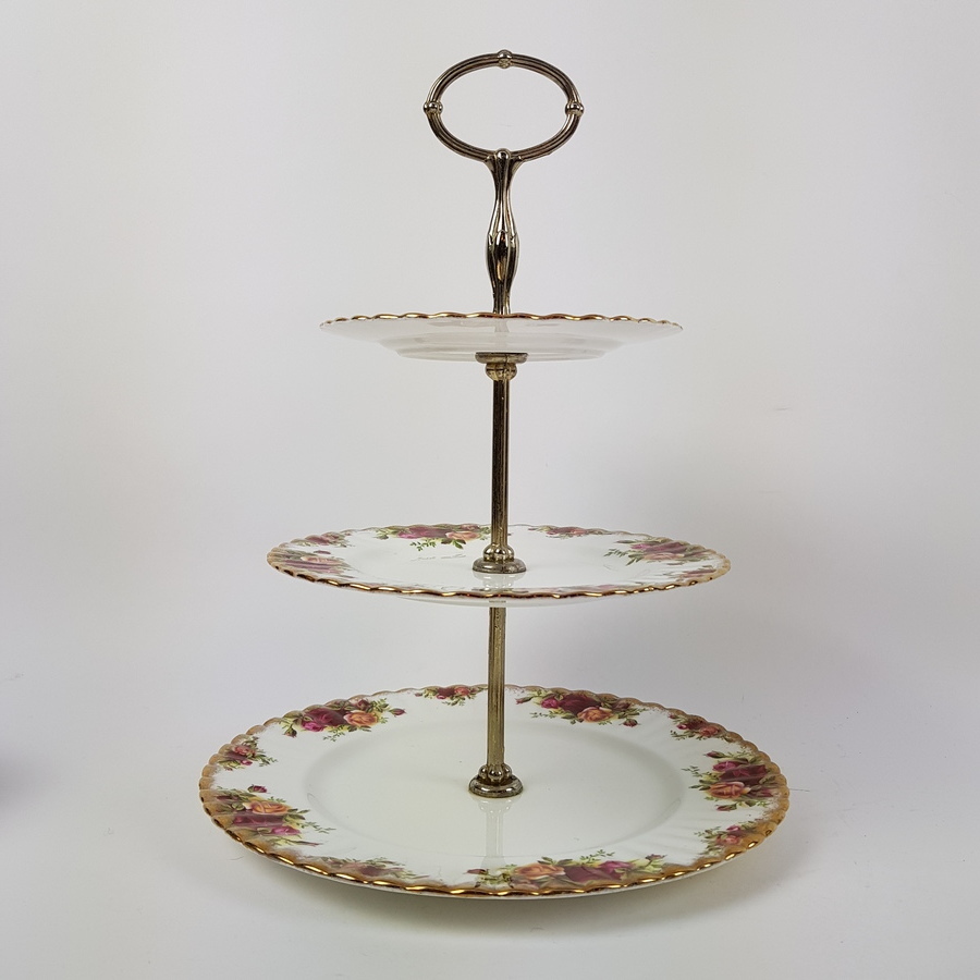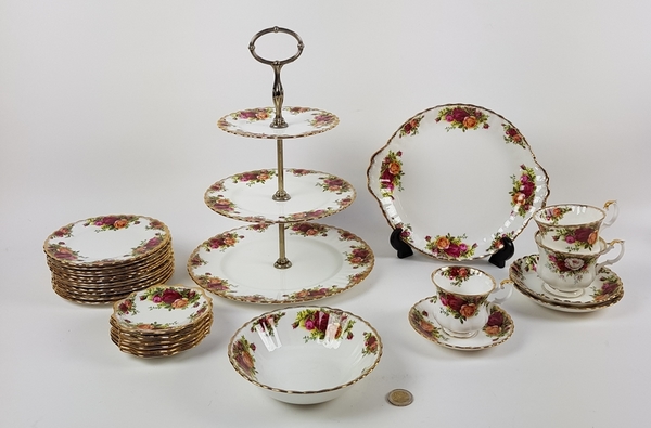 Gebakservies met thee-en koffiekopjes Royal Albert Old Country Roses, tweede helft 20e eeuw