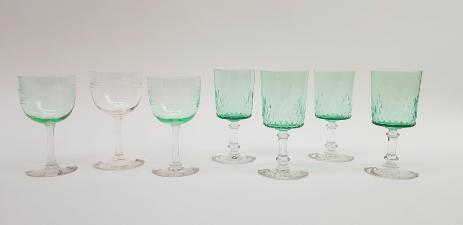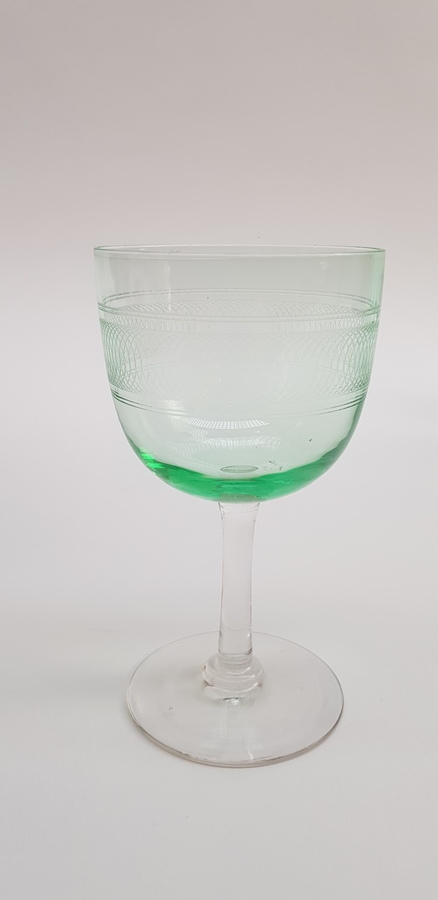 Glas, likeurglaasjes met wo. groene cuppa, ca. 1900