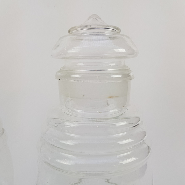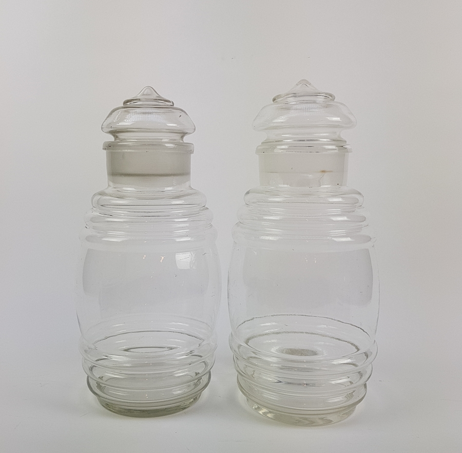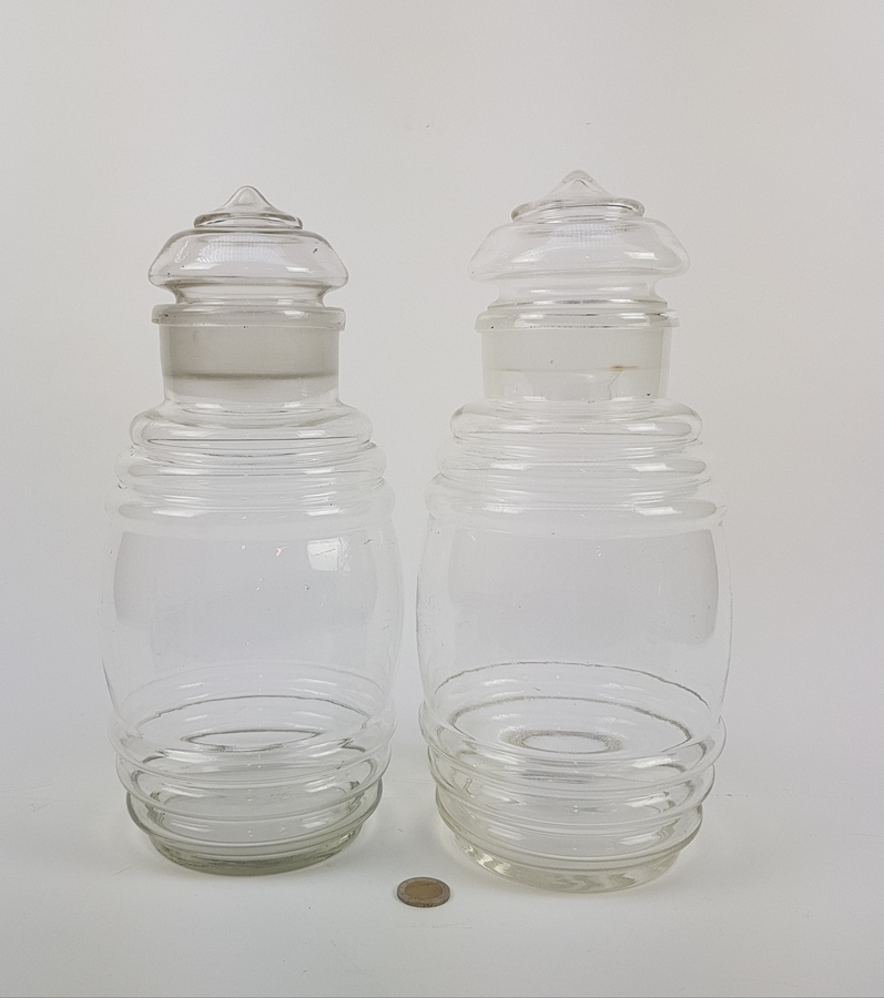 Glazen voorraadpotten in tonvorm, Holland, ca. 1900