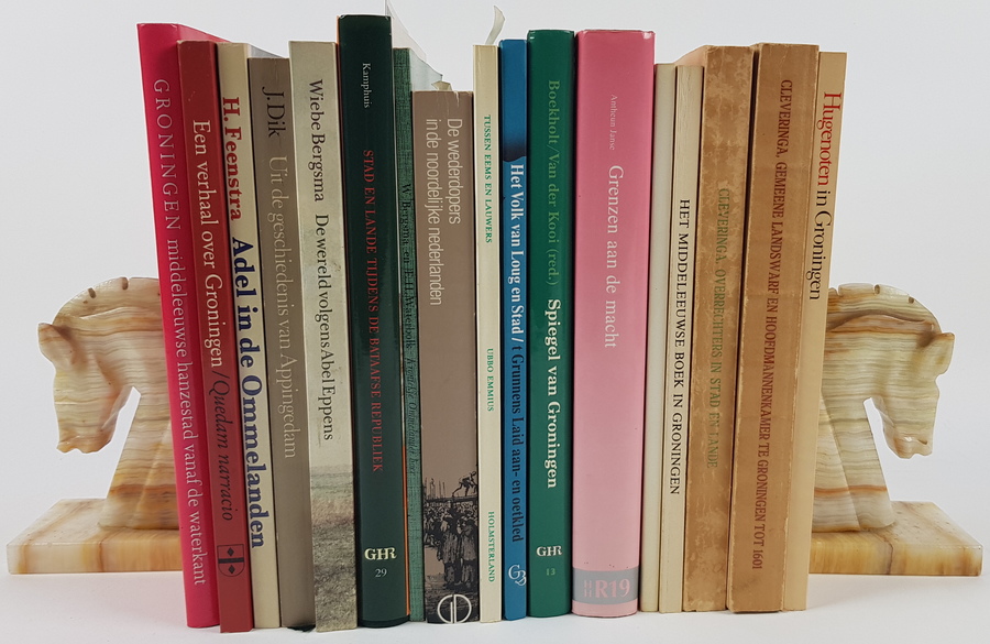 Een divers lot boeken, veelal met betrekking tot de stad en de provincie Groningen. Onder meer een paar titels uit de Groninger Historische Reeks en over Groningen in de middeleeuwen en de Vroegmoderne Tijd. [Totaal: 17]. |