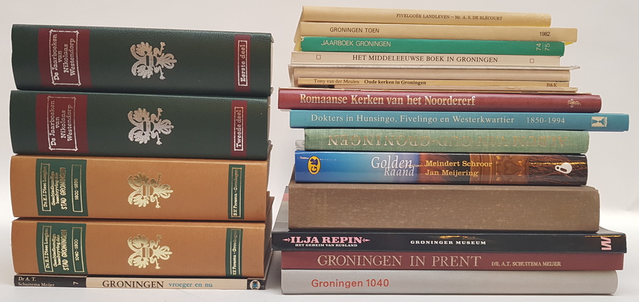 Een uitgebreid lot boeken met betrekking tot Groningen stad en provincie. Onder meer: Ilja Repin. Het geheim van Rusland (uitgave Groninger Museum). [Totaal: 22]. |