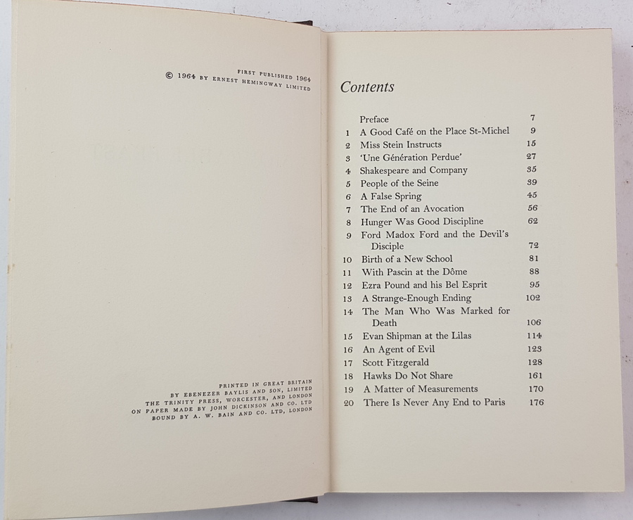 (Literatuur) Ernest Hemingway - A Moveable Feast (1e druk) + enkele andere