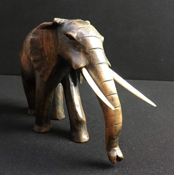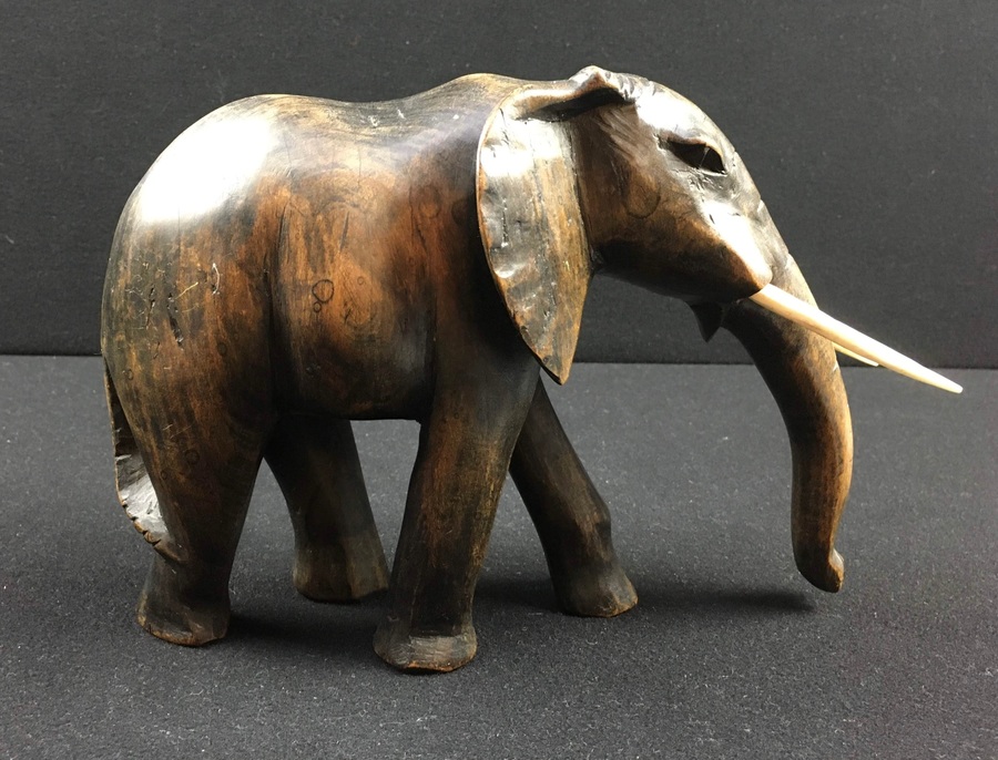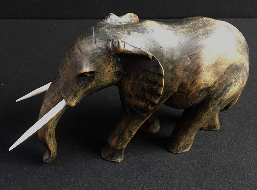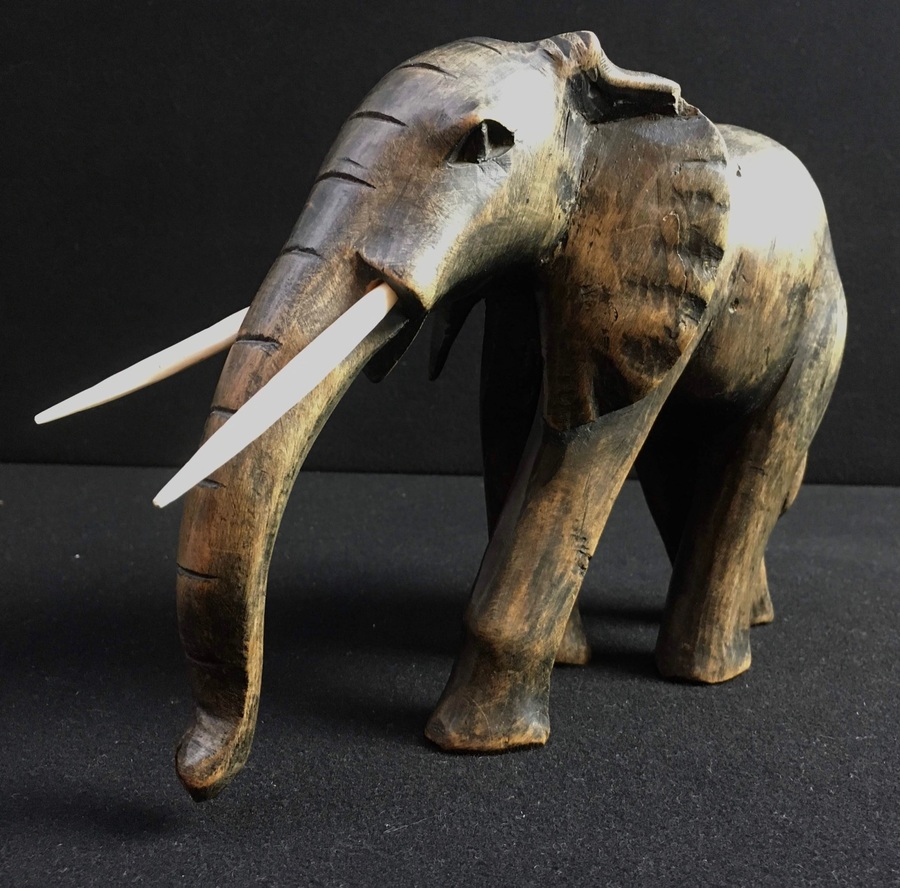Houten olifant met benen tanden, India, midden 20e eeuw