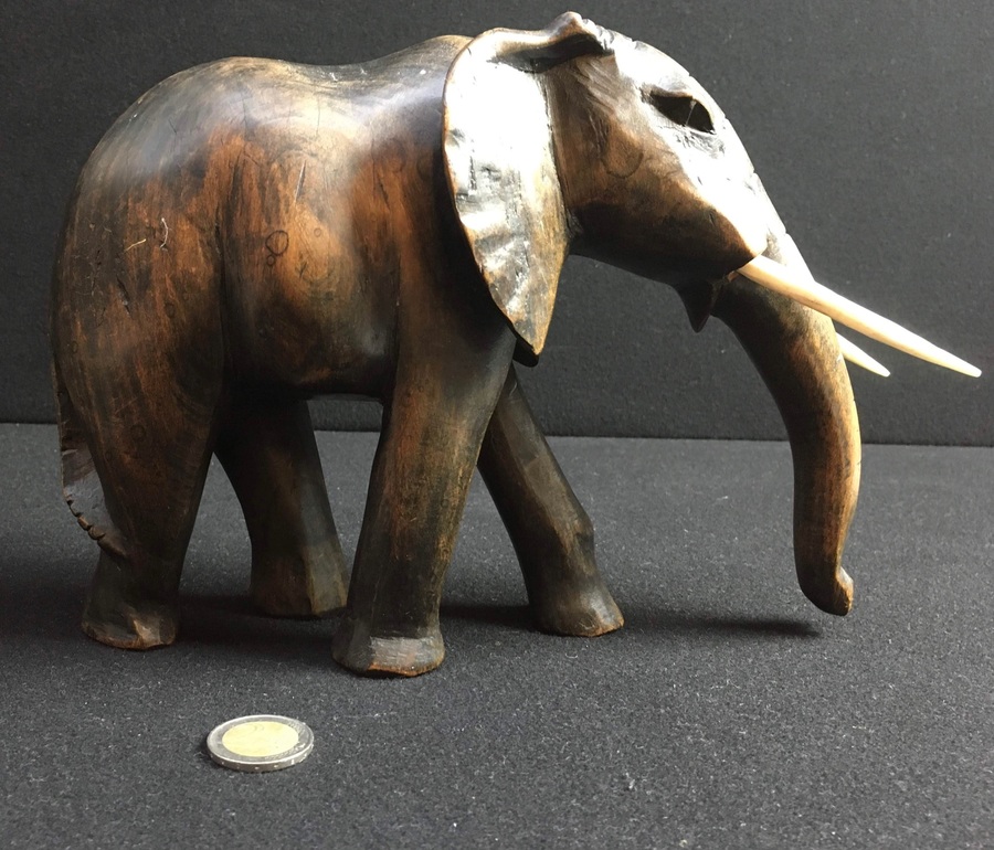 Houten olifant met benen tanden, India, midden 20e eeuw |