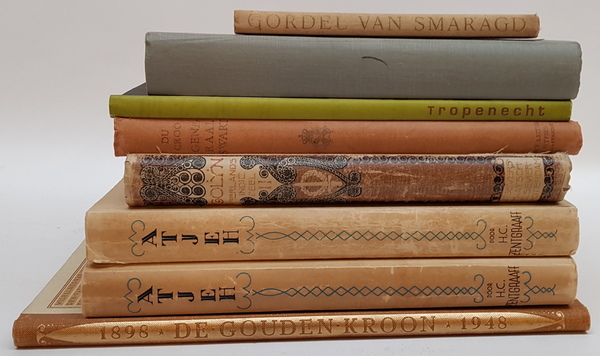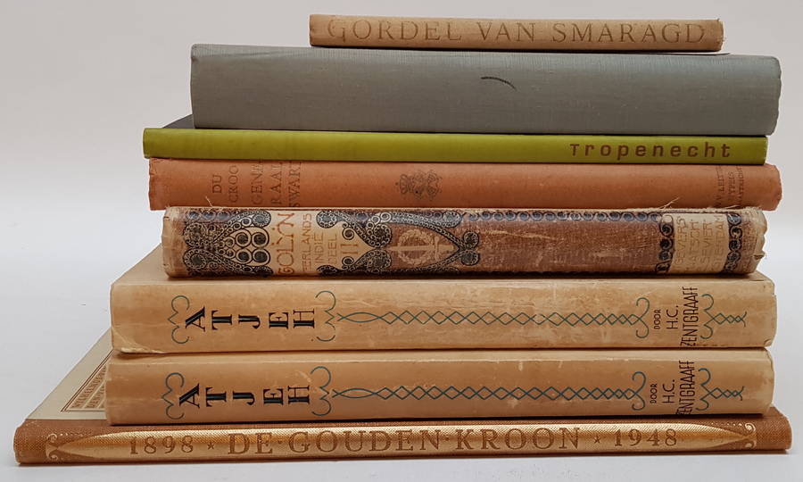 Een lot met 7 boeken over Nederlands-Indie, waaronder deel 2 van H. Colijn - Neerlands Indie. Hierbij 'de Gouden Kroon', Gedenkboek van het 50-jarig regeringsjubileum van Koningin Wilhelmina. [Totaal: 8]. |