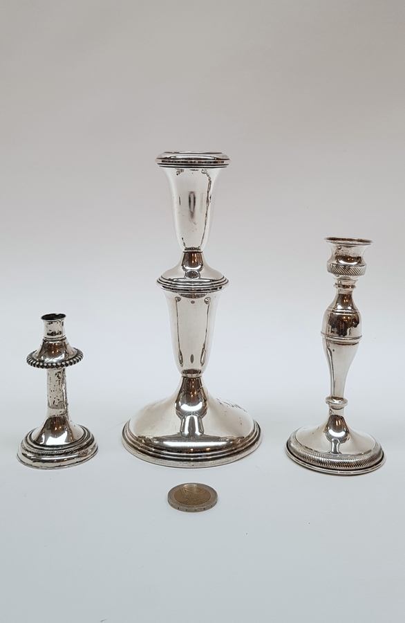 Zilver, Lot van 3 stuks kandelaars. 1e helft 20e eeuw.
