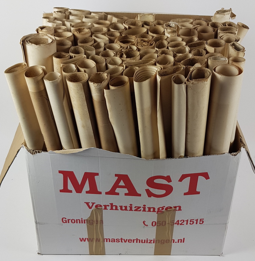 | Conditie | Redelijk. De litho's zijn stofvlekkig aan de onderzijde. Regelmatig scheuren, vouwsporen etc. | |