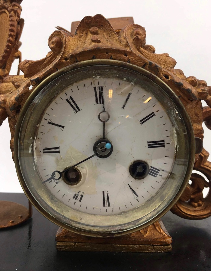 | Conditie | Goede conditie, cijferplaat beschadigd, ornamenten zitten los. | |