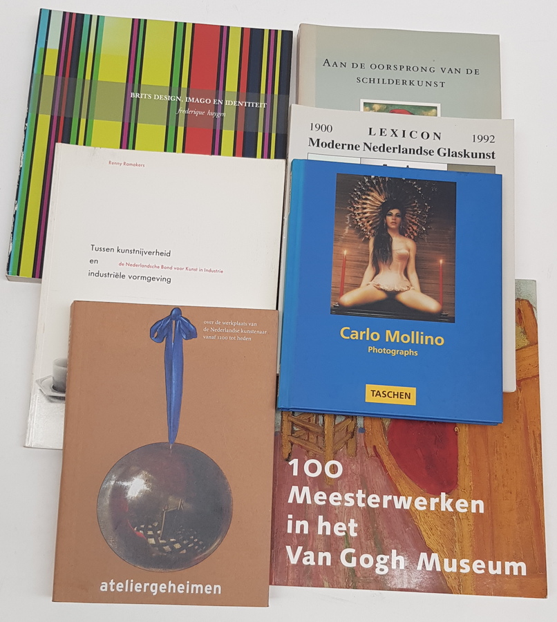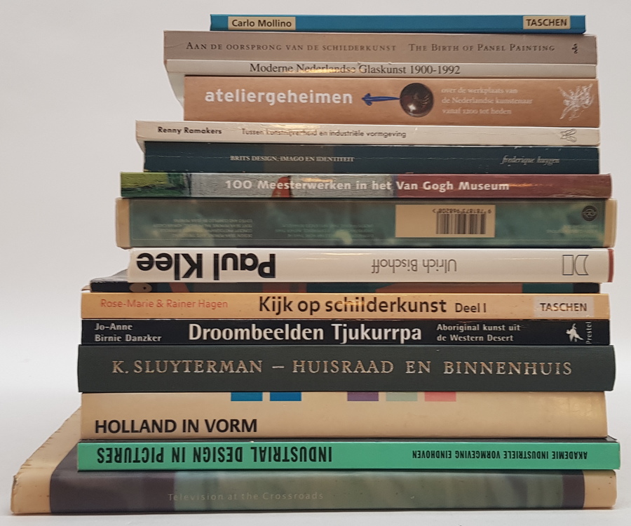Een divers lot kunstboeken, waaronder enkele over schilderkunst en over industriele vormgeving. [Totaal: 16]. |