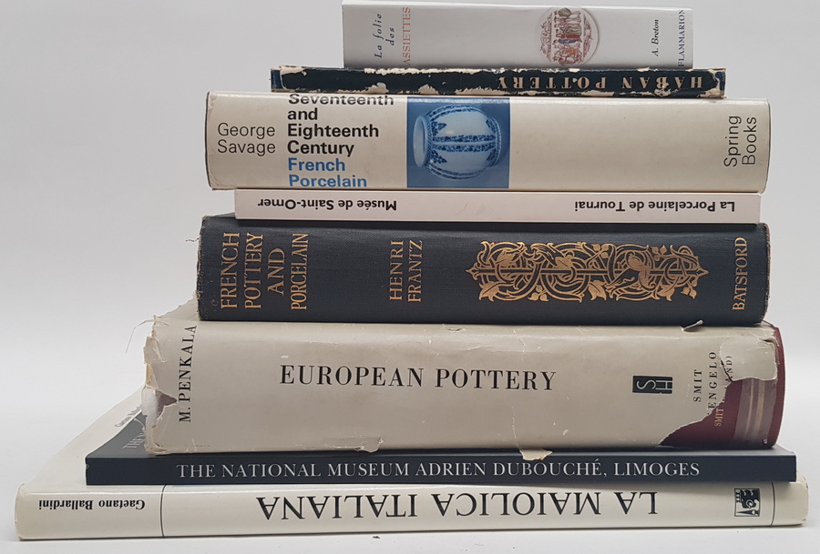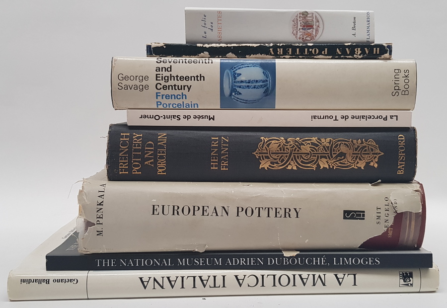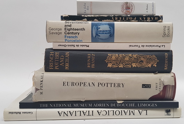 Een divers lot boeken over aardewerk, waaronder porselein. Onder meer met: George Savage - Seventeenth and Eighteenth Century French Porcelain. [Totaal: 8]. |