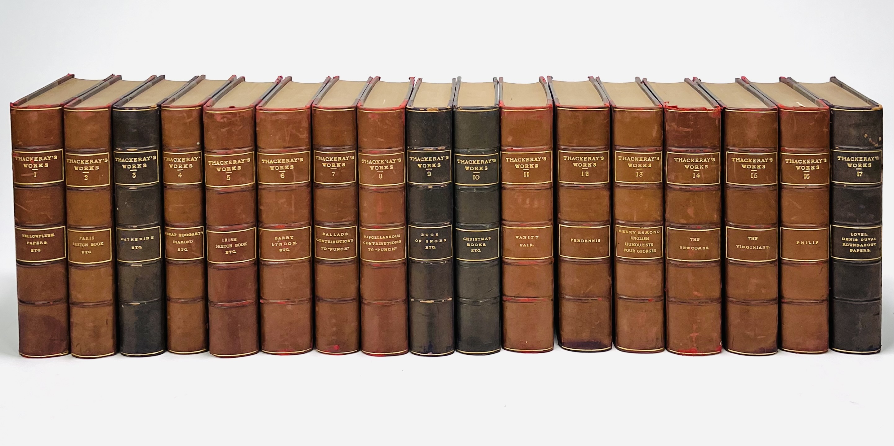 William Makepeace Thackeray - The Oxford Thackeray with illustrations. London, New York, Toronto: Henry Frowde, Oxford University Press, z.j. (circa 1910). Uniform gebonden in halfleer, rug met titelschildjes. Elk deel met vele illustraties in zwart-wit. Circa 600-700pp. per deel, 8vo. |