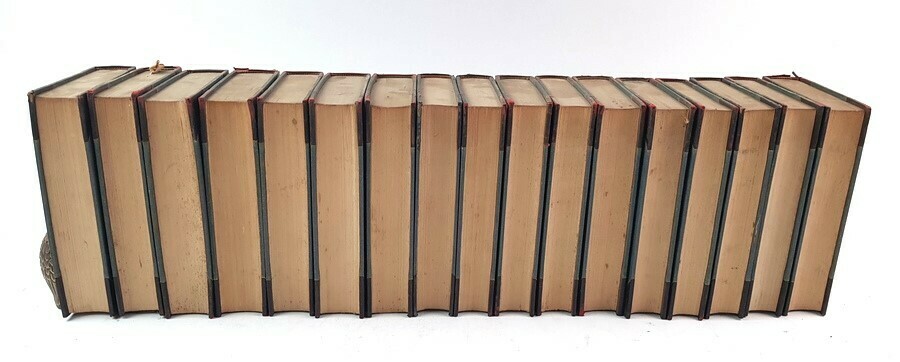 | Conditie | Goed, compleet. Kleine sporen van gebruik aan de banden, binnenwerk goed, binding stevig. Ex-libris sticker voorin de delen. | |
