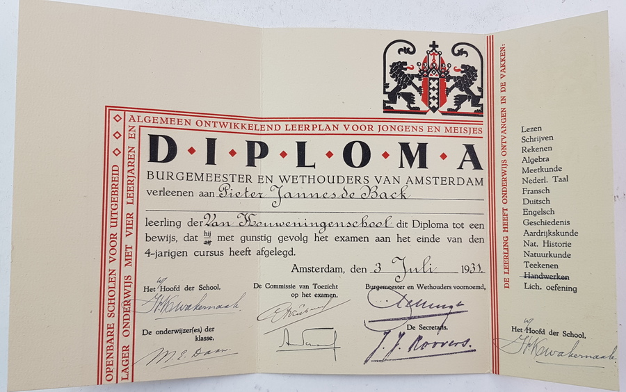 Een lot veelal persoonlijke documenten, waaronder schooldiploma's en stamkaarten. Hierbij 2 kalenderbladen (van de 5) van de Jubileumkalender van het Nieuwsblad van Het Noorden uit 1938 en een Bijbel. |