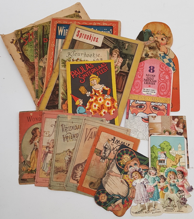 Een lot kinderboekjes en reclame-uitingen, waaronder enkele van J. Vlieger te Amsterdam en enkele over St. Nicolaas. Alle met fraaie omslagen en vormgeving. |
