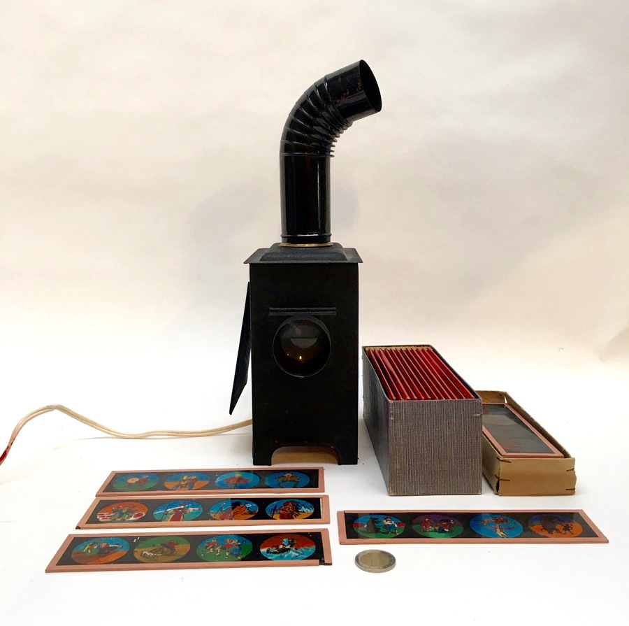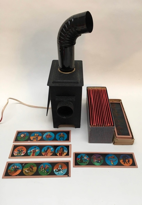 Ijzeren toverlantaarn met plaatjes, Duitsland,begin 20e eeuw |