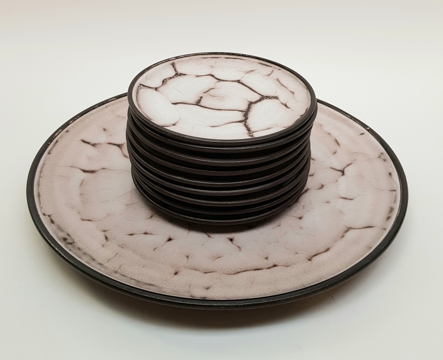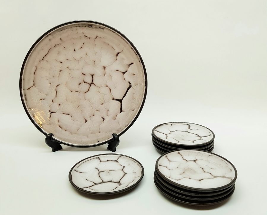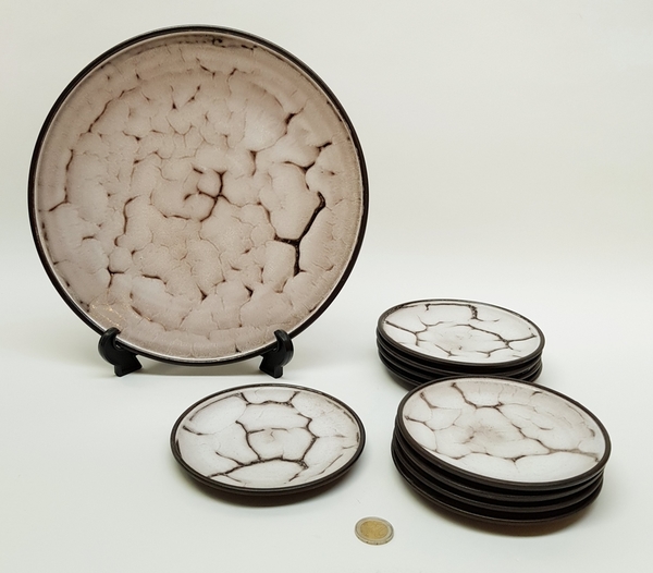 Aardewerk, Mobach gebakstel, ca, 1955, 9 gebaksborden en een taartbord totaal 10 pcs. |