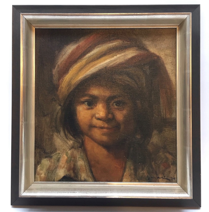 Oleografie op paneel, portret van een kind, midden 20e eeuw |