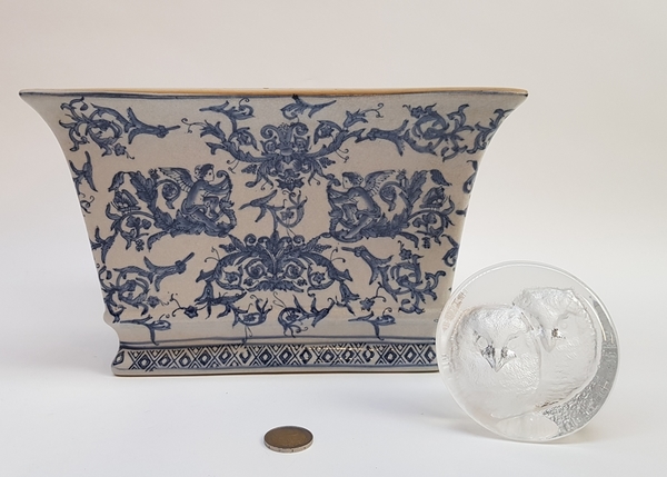 | Afmetingen | Plantenbak hoogte 19 cm en breedte 29,5 cm. Presse papier diameter 9,5 cm. |