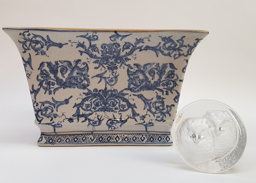 Aardewerk en persglas, plantenbak en presse papier ( Mats Johnson ), tweede helft 20e eeuw