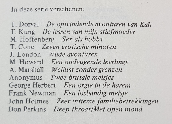 Don Perkins e.v.a. - De opwindende avonturen van Kali, Wilde avonturen, Zeven erotische minuten e.v.a. - Vianen, ECI, ca. 1980. Hardcovers, linnen met stofomslag. Ca. 150pp per deel. [Totaal: 12]. |
