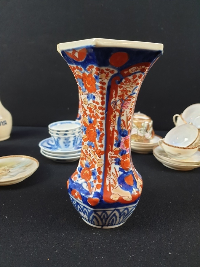 | Afmetingen | Hoogte Imari vazen is 20 cm. Hoogte blauw witte kommetjes is 3. 8 cm ( Mosa) |