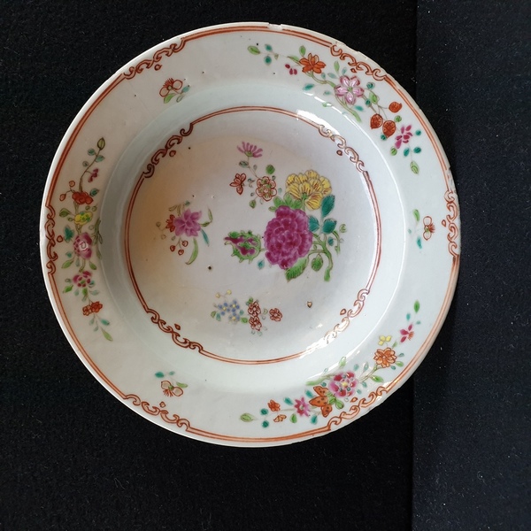 Porseleinen borden en een kom, famille rose, China, 18e eeuw