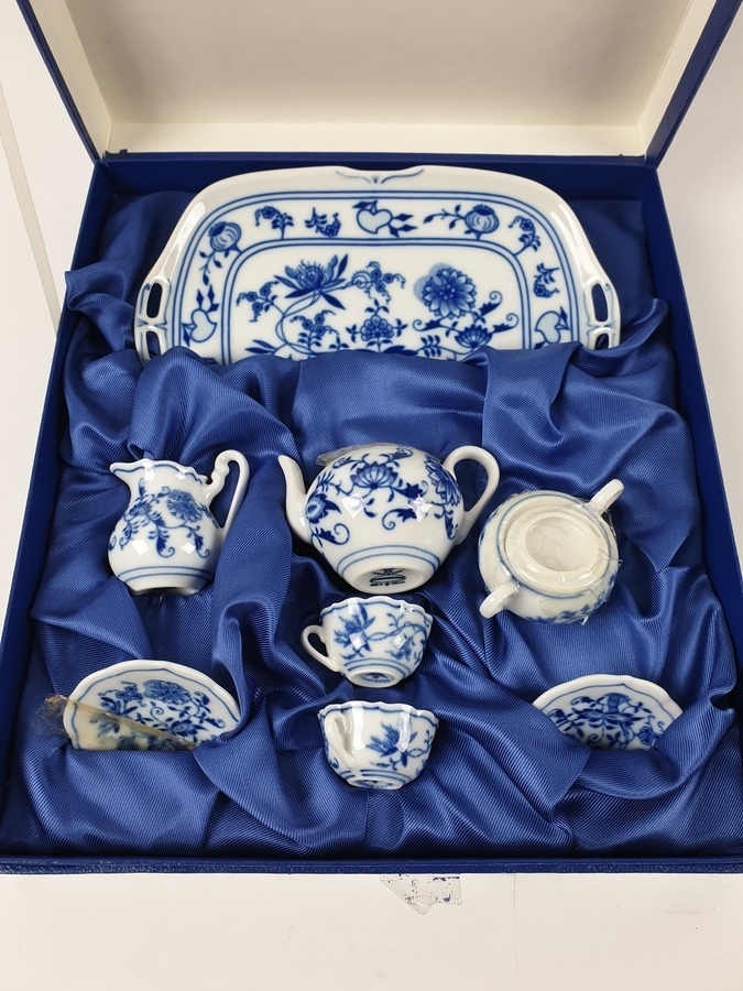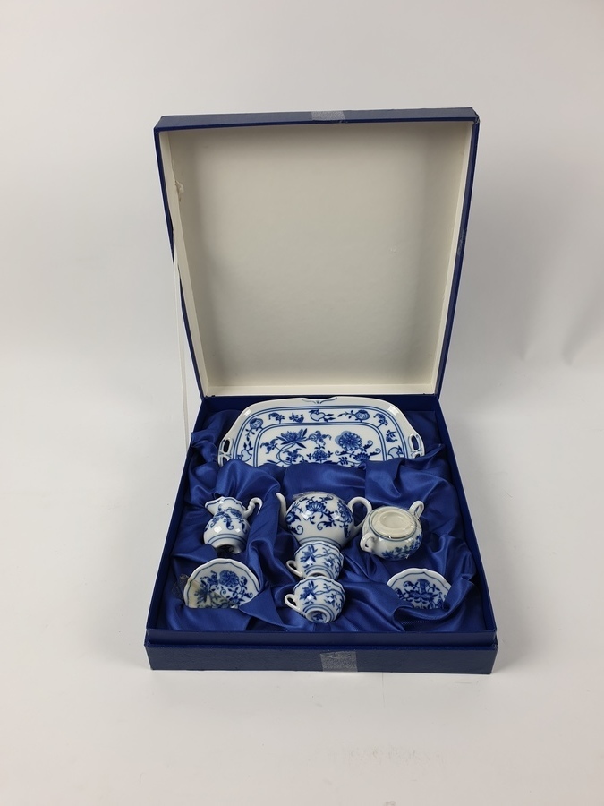 Porseleinen Swiebelmuster kinderservies in originele cassette, Tjech republic, eind 20e eeuw