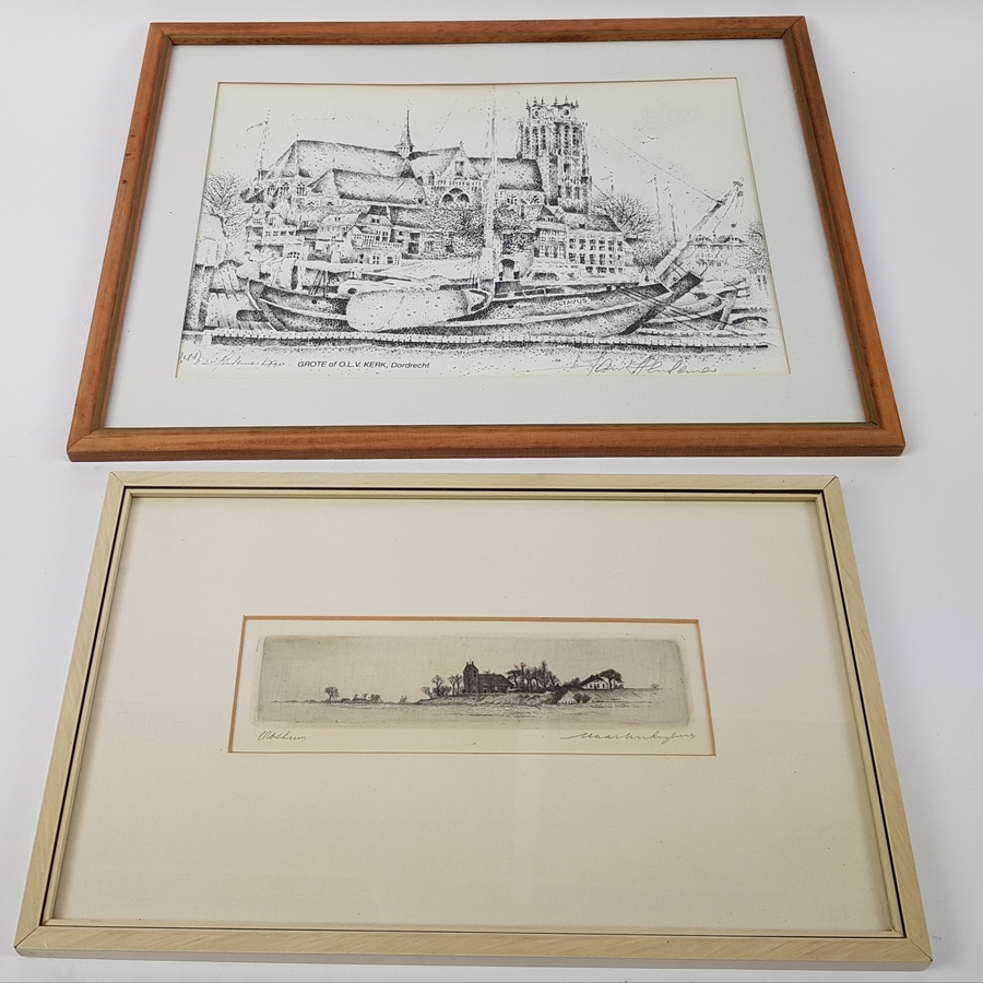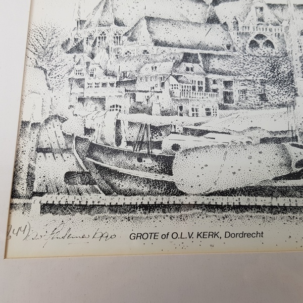 Prenten wo. Kerk Dordrecht, gesigneerd, eerste helft 20e eeuw |