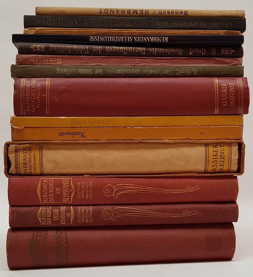 Een divers lot boeken over het leven en werk van Rembrandt. Vele afbeeldingen in kleur en zwart-wit. Alle titels zijn geschreven in het Duits. [Totaal: 14]. |