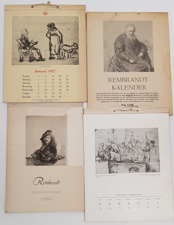 Een uitgebreid lot boeken over Rembrandt. Vele titels over zijn werk, waaronder enkele over zijn kunst met betrekking tot de Bijbel. Hierbij enkele Rembrandt-kalenders. De meeste titels in het Nederlands. [Totaal ruim 30]. |
