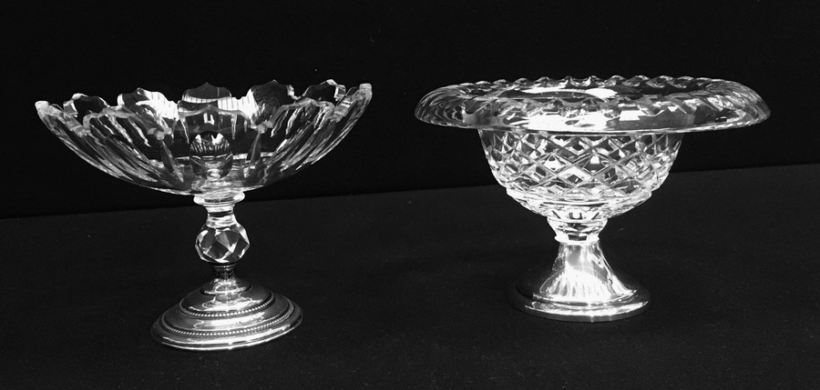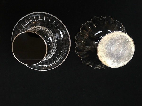 Kristallen coupes met zilveren voet, Duitsland / Bohemen, eerste helft 20e eeuw, geen merken maar getest zilver |