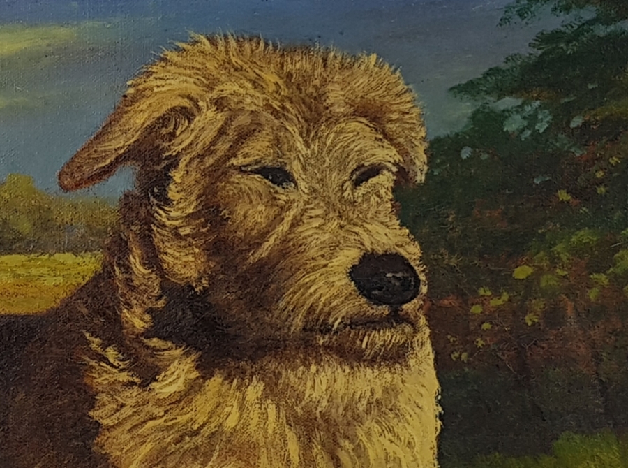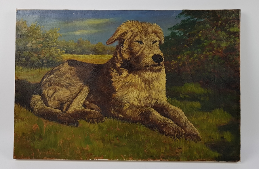 Schilderij van een hond, olieverf op doek eerste helft 20e eeuw |