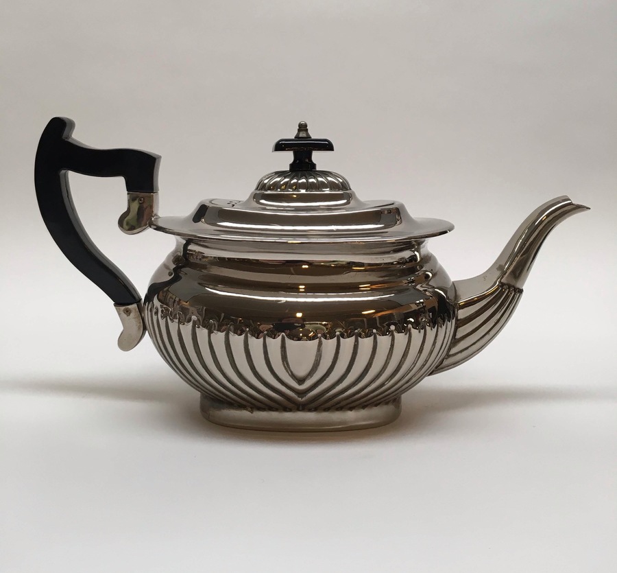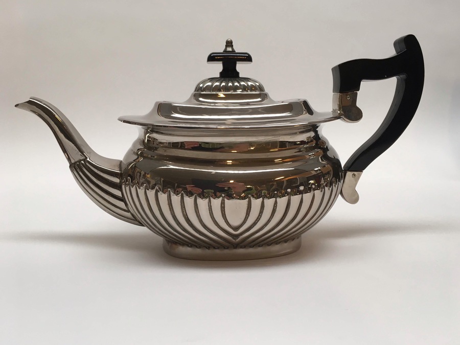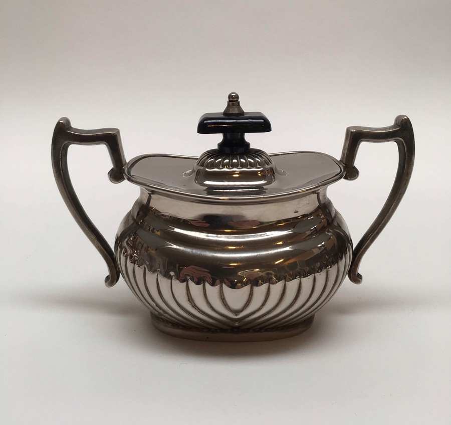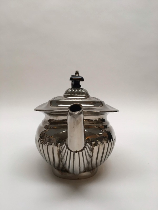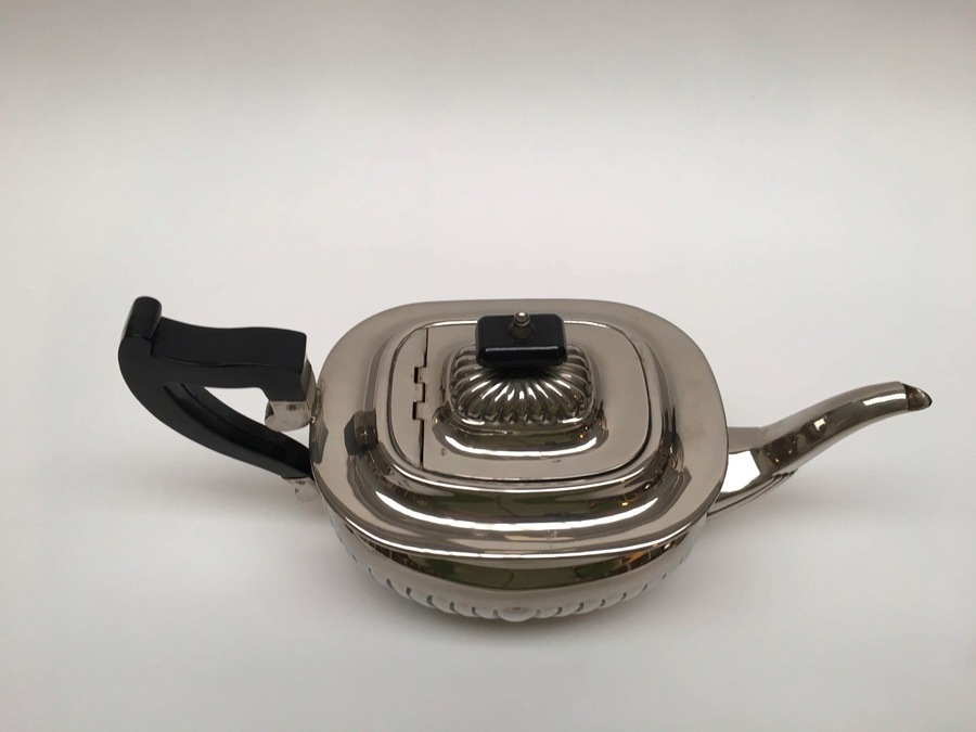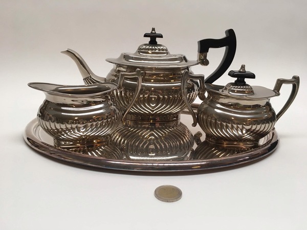 Plate, koffieservices 4-delig, midden 20e eeuw. Bestaande uit: Dienblad, theepot, suikerpot en melkkan. |