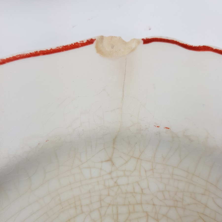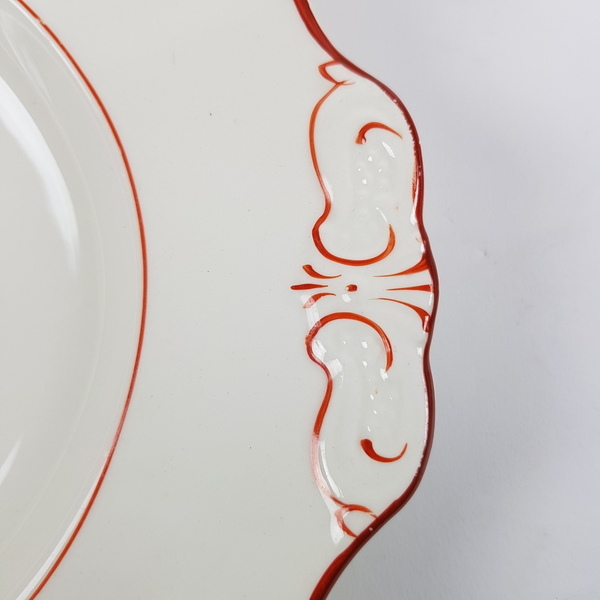 | Conditie | Goede conditie, een ontbijtbord beschadigd en een soepbord een barst. | |