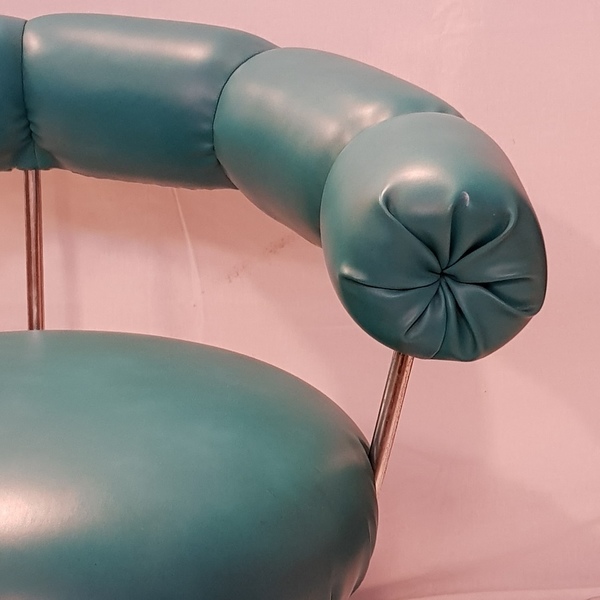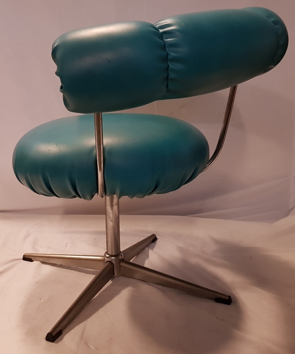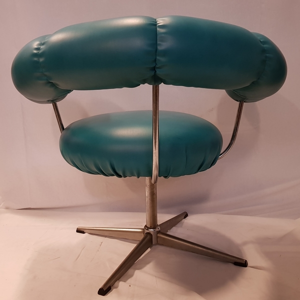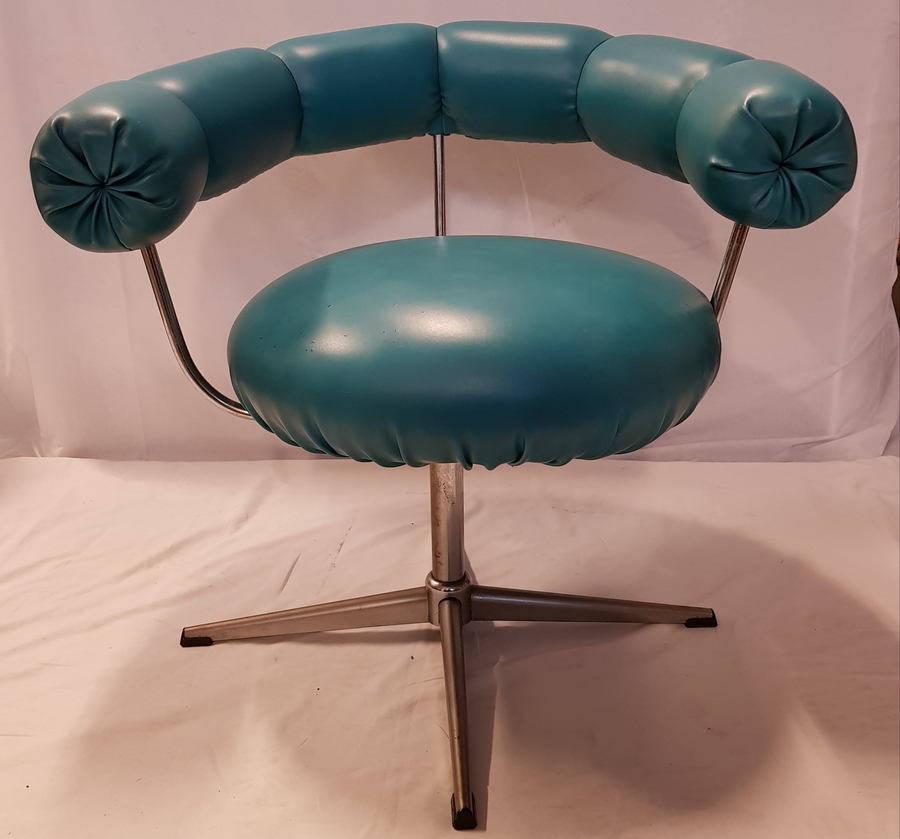 | Kavelnummer en naam | 979. Metalen stoel met blauwe puffy skai leren bekleding, midden 20e eeuw | |