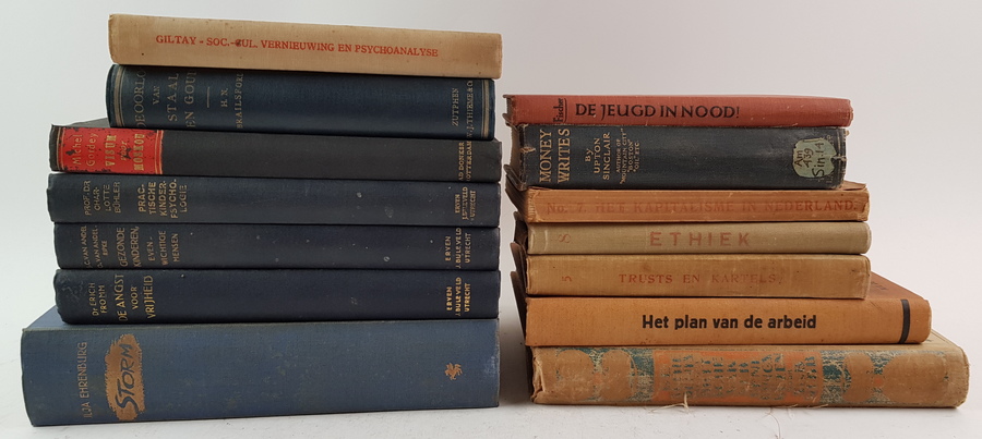 Een divers lot boeken met betrekking tot socialisme en psychologie. Onder meer: Erich Fromm - De Angst voor de Vrijheid en Ilja Ehrenburg - Storm. [Totaal: 14]. |