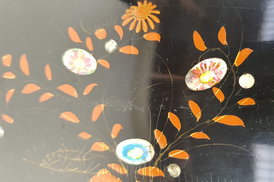 | Afmetingen | Lakdoos 17 x 7 cm, parfumfles hoogte 9 cm en theelepal max. lengte 11,5 cm. |