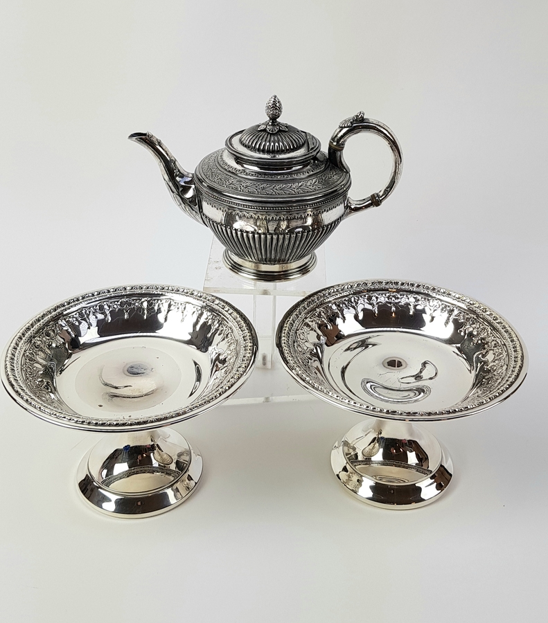 | Kavelnummer en naam | 904. Verzilverde theepot en schalen, Reed & Barton, USA, midden 20e eeuw | |