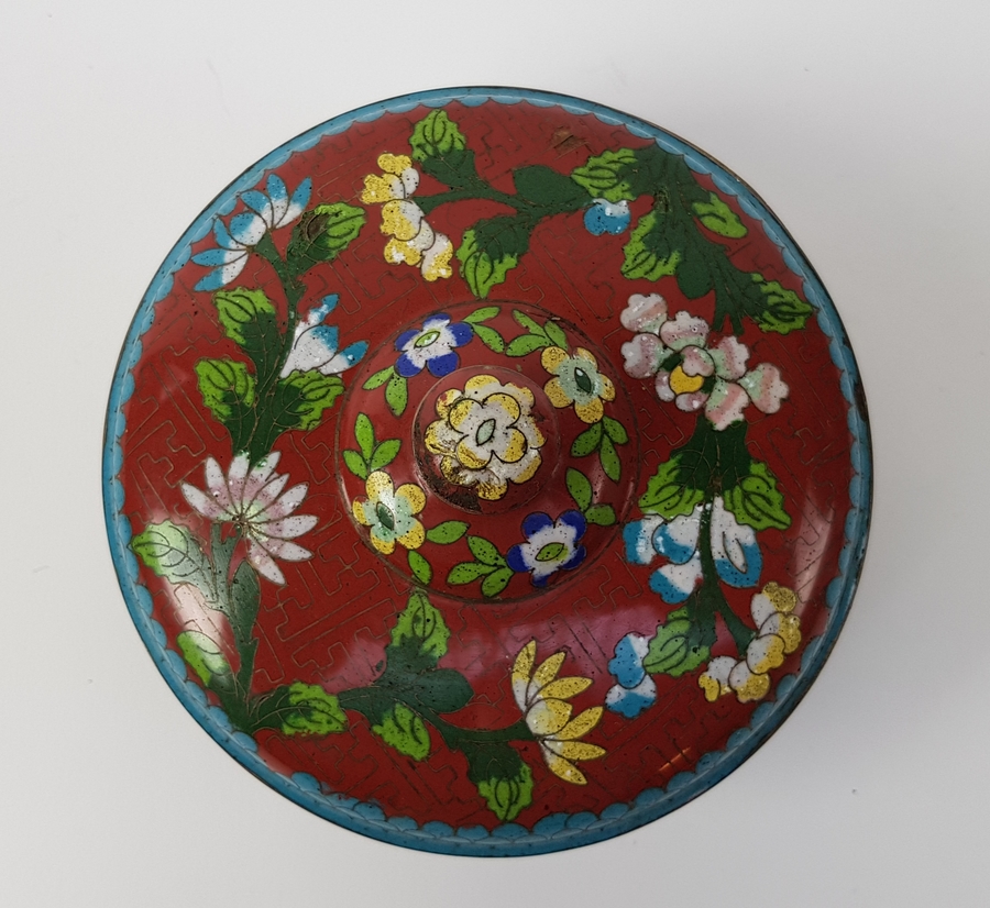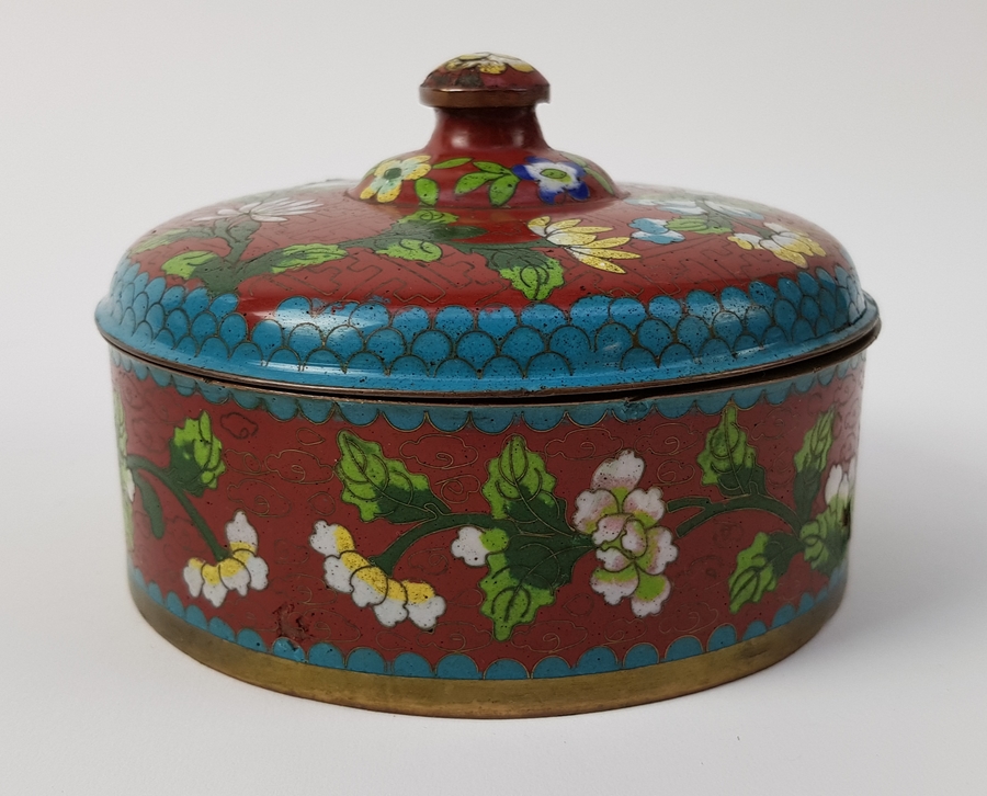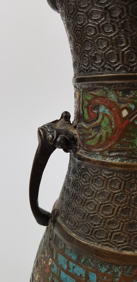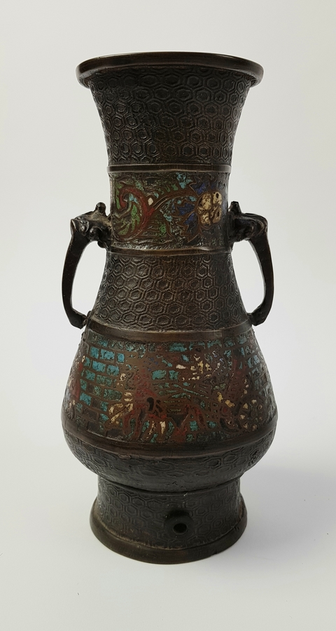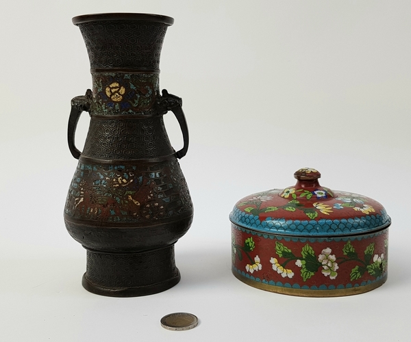 Cloisonné vaas en trommel eerste helft 20e eeuw |