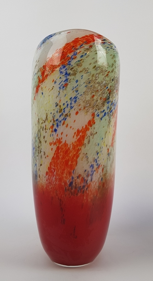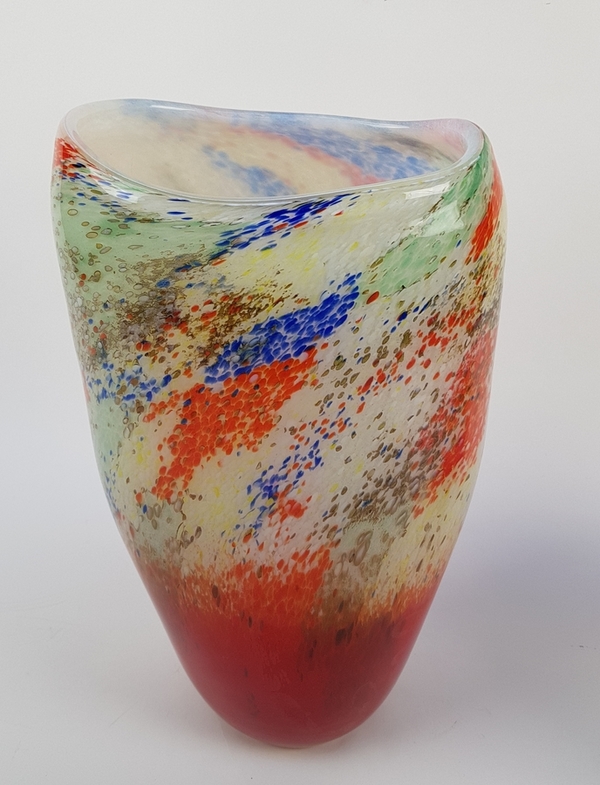 Glazen vazen met kleurpoeders en überfang techniek, eind 20e eeuw
