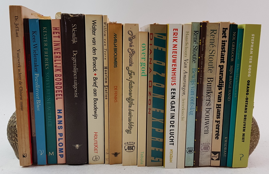Een uitgebreid lot literatuur, met onder andere werken van Rene Stoute en Nol Gregoor [Totaal: 21]. |