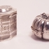 Zilver, Lodereindoos + 1 andere in de vorm van een pompoen o.a Nederlands 1974. Pompoen gemerkt met 800( 800/1000 zilver). Lodereindoos gemerkt: Minerva, lopende leeuw 2, jaarletter )=1974 en meesterteken: Niekerk Schoonhoven. |