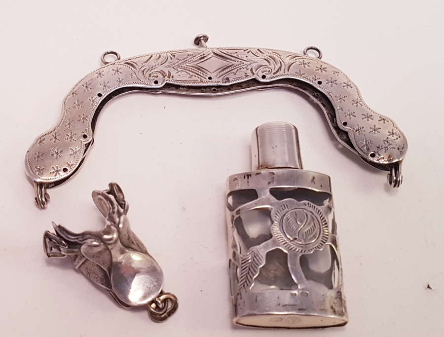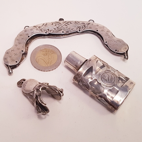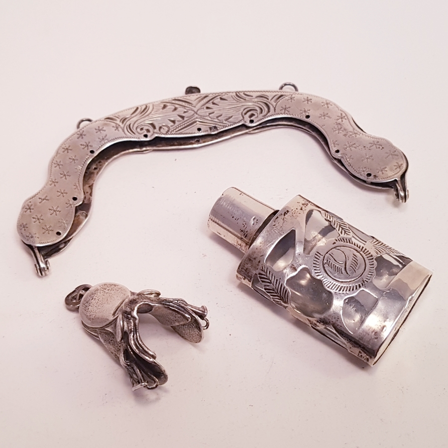 Zilver, lot van 3 stuks o.a. een Groningse beursbeugel, Winsum 1871.