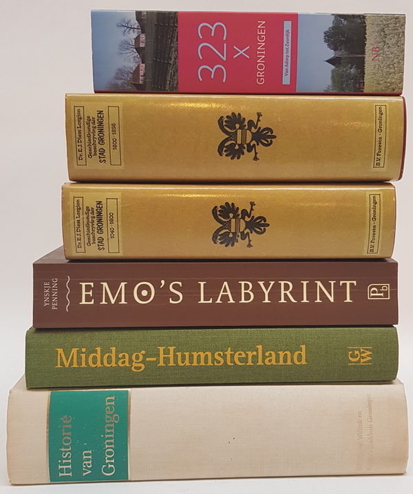 Een lot boeken met betrekking tot de provincie Groningen, waaronder Middag Humsterland en Emo's Labyrint. [Totaal: 6].