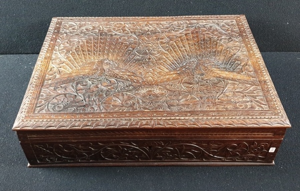 Houten naaikist met een decor van pauwen, Indonesië, midden 20e eeuw