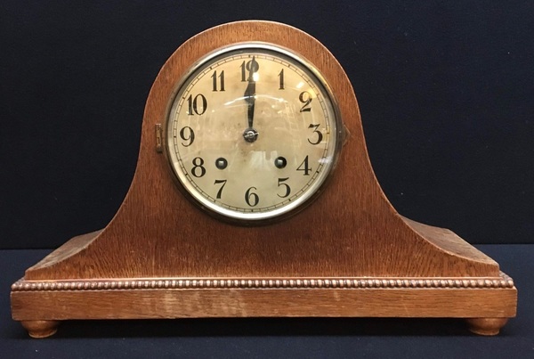 Houten tafelklok versiert met parelrand, begin 20e eeuw