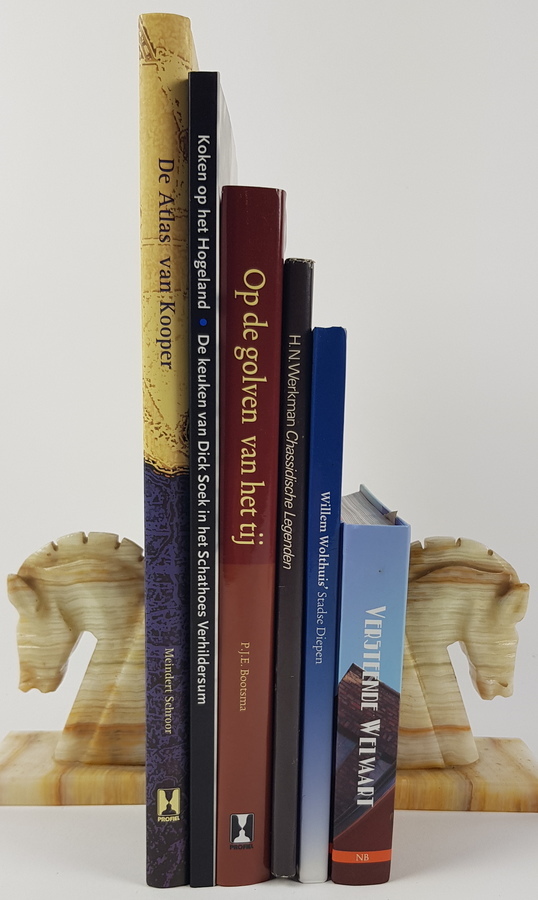 Een divers lot boeken met betrekking tot de stad en de provincie Groningen. Onder meer Meindert Schroor: De Atlas van Kooper en Koken op het Hogeland. [Totaal: 6].