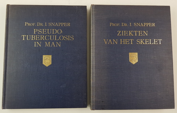 Prof. Dr. I. Snapper - Pseudo-Tuberculosis in Man en Ziekten van het Skelet. (Deel 1 en 2 uit de serie: Ervaringen uit de interne kliniek). Haarlem: De Erven F. Bohn, 1937/1938. Beide delen gebonden in uniform linnen. 90; 200pp. 28x22 cm (4to).