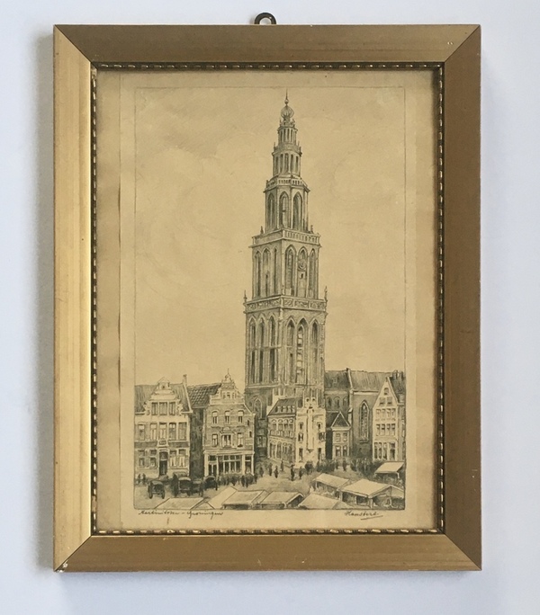 871. Ets, Keizersgracht Amsterdam en landkaart Drenthe 1742