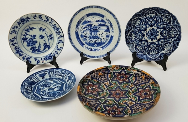 Porselein / aardewerk , borden en een schaal, divers lot, 18e, 19e en 20e eeuw